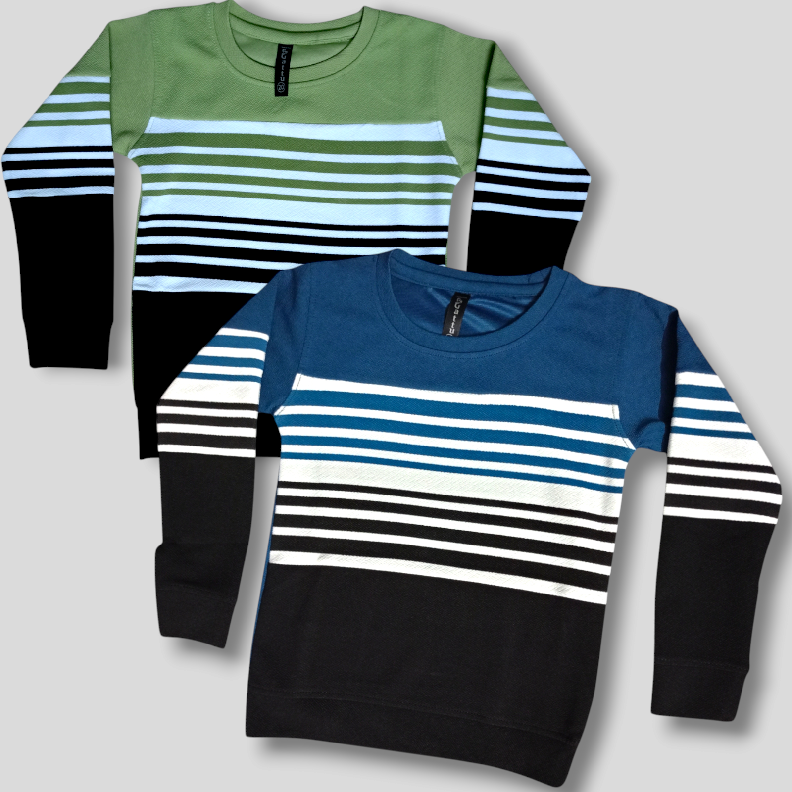 "Kids Full Sleeve T-Shirt Pack of 2 - Green & Blue"
